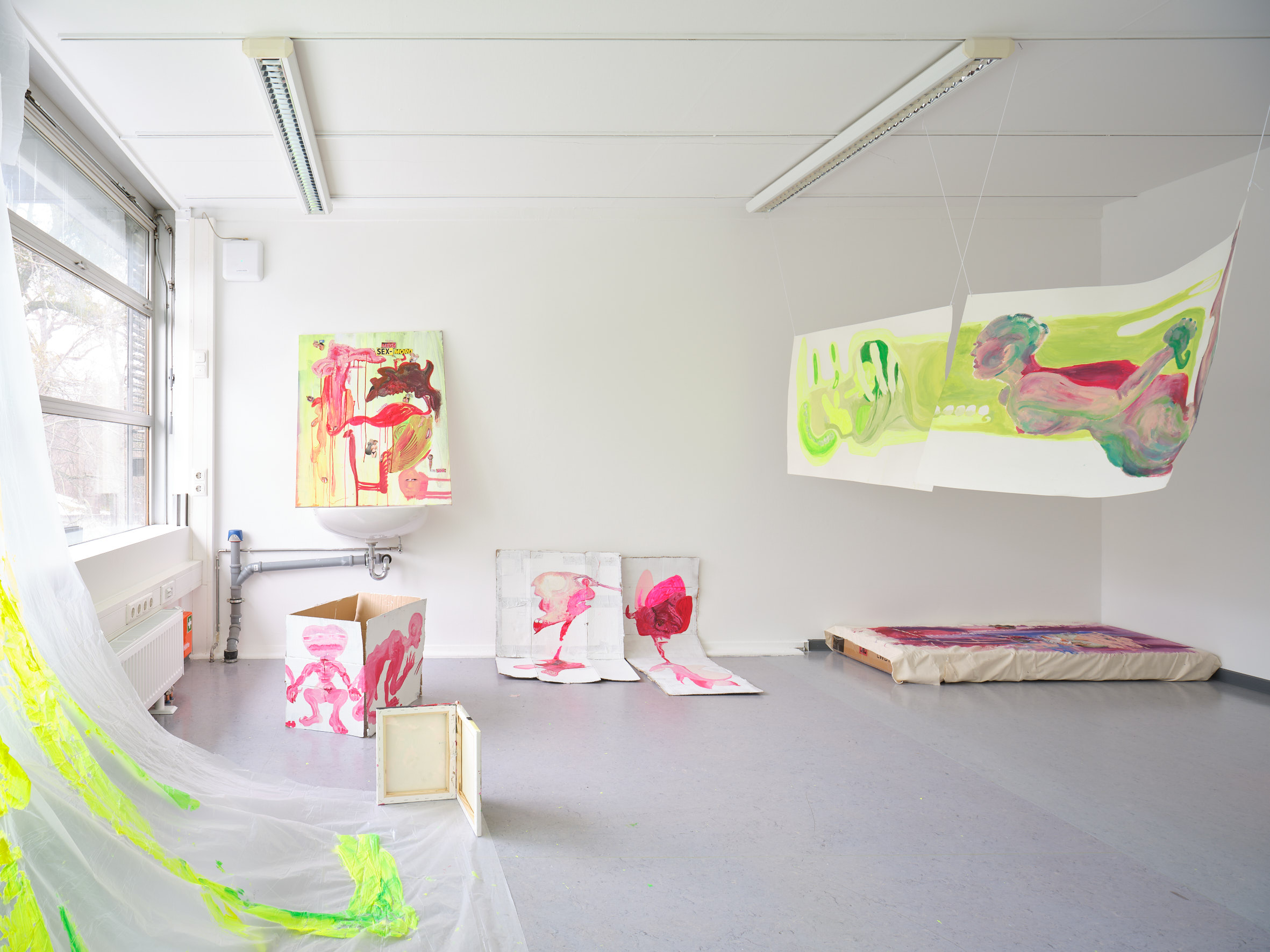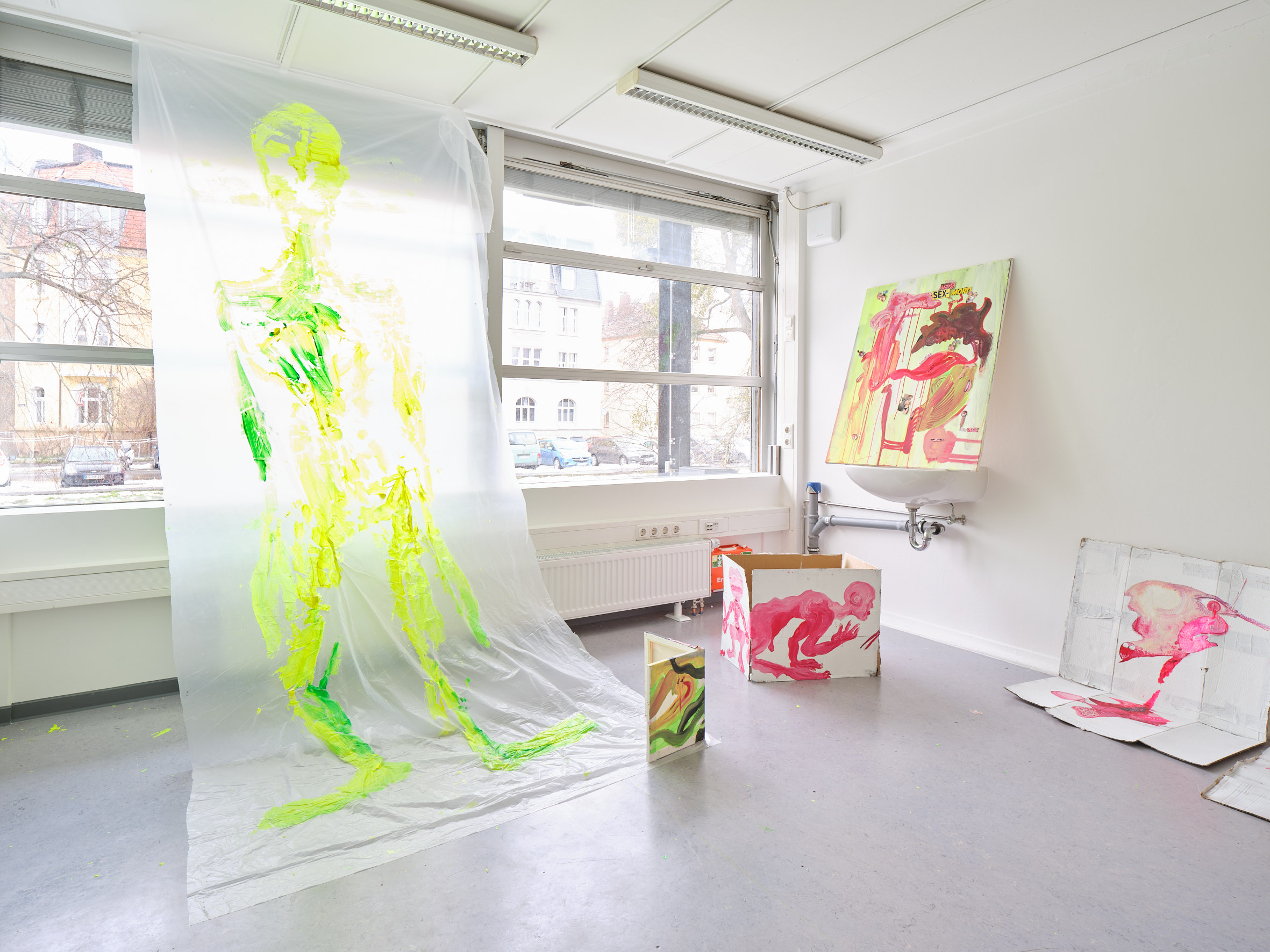Acryl, Öl und Collage auf Leinwänden