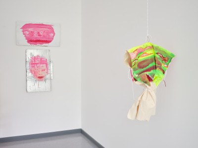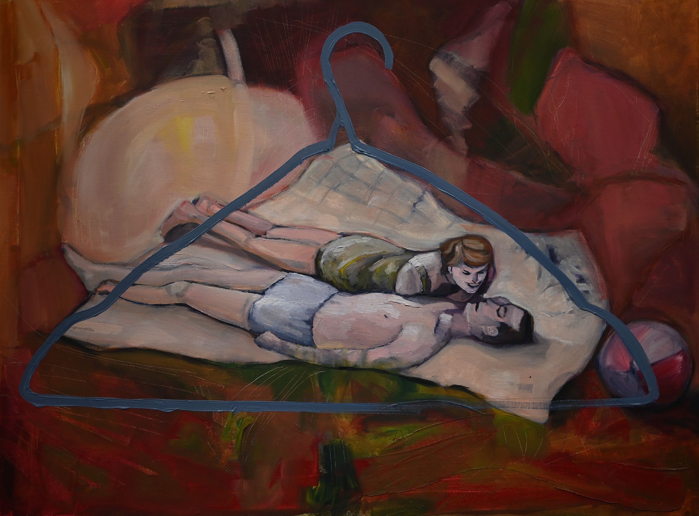 Acryl, Öl und Collage auf Nesselstoff und Draht